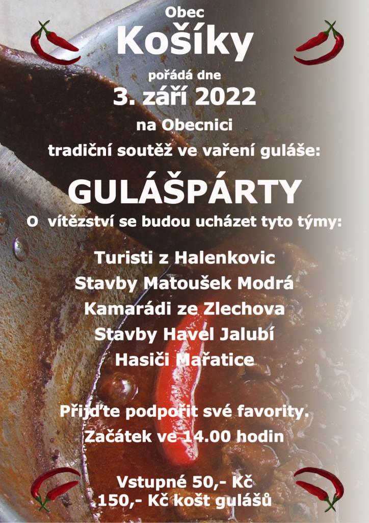 Poznámka: Vstupné 50,- Kč 150,- Kč košt gulášů